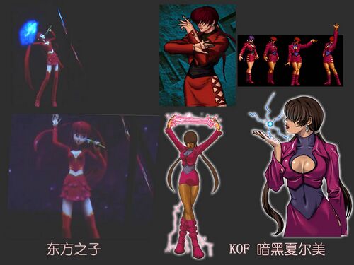 • 网友雷神之囧认为东方栀子的形象和拳皇中的角色夏尔米类似,并制作对比图。
