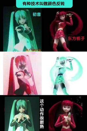 • 有人猜测东方栀子是反色的初音,并制作对比图。[22]