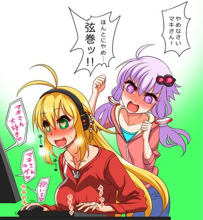 和VOICEROID的弦巻マキ,东北俊子、琴叶茜、葵、東北きりたん,VOCALOID的IA,miku,还有CeVIO的ONE,连同自己的声优石黑千寻都有百合CP作品人渣后宫王,甚至在绁星灯发售后又多了个后宫连自己亲妹妹都不放过的吗啊喂。
